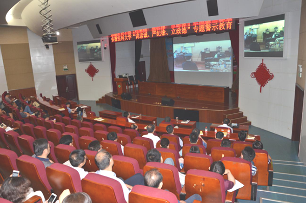 7月13日上午,我校扎实推进“讲忠诚、严纪律、立政德”专题警示教育,组织观看专题警示教育片《缪富国违法案件庭审纪实》及《警钟长鸣、护佑生命——安徽省卫生计生系统反腐倡廉警示录》。在校校领导班子成员、全校处级领导干部共120余人观看了专题警示教育片。