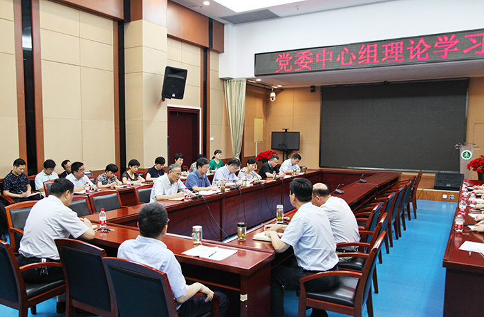 7月1日下午,校党委中心组召开理论学习会。校党委中心组组长、校党委书记李俊,校长曹云霞,校党委副书记刘群英,纪委书记常业军,副校长余永强,副校长肖圣龙及校党委中心组全体成员参加会议。