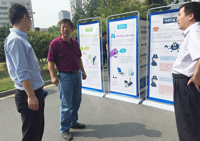 校文化广场的网络安全教育主题展览吸引了师生们的脚步。“《中华人民共和国网络安全法》是什么时候开始施行的?”“如何规范个人信息收集?”“培养网络安全的七种意识是什么?”“如何应对来路不明的电话、短信?”“网络账号、密码安全怎么保护?”
