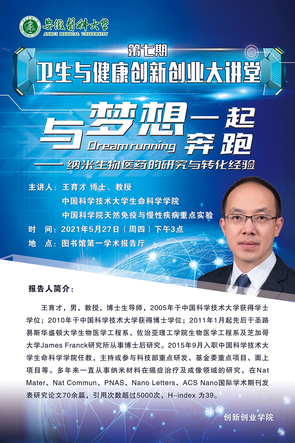 卫生与健康创新创业大讲堂:与梦想一起奔跑——纳米生物医药的研究与转化经验