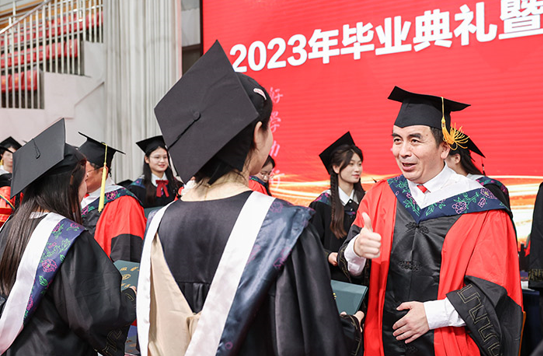 “祝贺毕业!”“工作落实了吗?”“还要继续在我们学校读硕士吗?很好!继续努力!”“接着读博吗?加油!”学位授予仪式上,学校领导和校学位委员会成员为毕业生加冕颁证,并暖心询问学子们的未来打算。