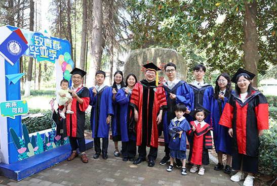 毕业生们纷纷同校领导合影留念。李若菲 摄