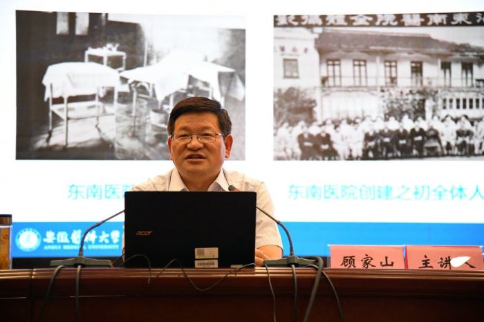 “创建于上世纪的安医大,是在民族危难时刻由一群学贯中西的科学家、医学教育家带着医学报国的梦想于1926年在黄浦江边创立的。”顾家山带领同学们重走安医孕育而生、筚路蓝缕、不断突破的奋斗历程。“97年的奋斗征途,安医人在学术科研、学科建设、校院一体发展等方面取得了一系列历史性突破。她始终与民族复兴、国家富强、人民幸福同步发展,也始终承担着国家使命和历史责任。”
