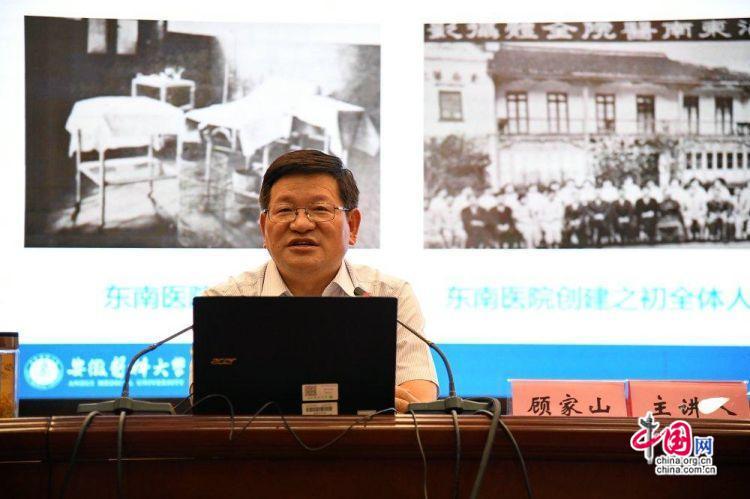 “创建于上世纪的安医大,是在民族危难时刻由一群学贯中西的科学家、医学教育家带着医学报国的梦想于1926年在黄浦江边创立的。”顾家山带领同学们重走安医孕育而生、筚路蓝缕、不断突破的奋斗历程。“97年的奋斗征途,安医人在学术科研、学科建设、校院一体发展等方面取得了一系列历史性突破。她始终与民族复兴、国家富强、人民幸福同步发展,也始终承担着国家使命和历史责任。”