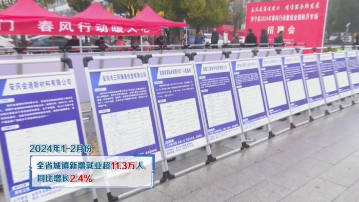 今年以来,安徽通过开展“春风行动”、“工会送岗位”等系列招聘活动和组织就业帮扶、“家门口”用工对接等,1-2月份,全省城镇新增就业超11.3万人,同比增长2.4%,确保了就业局势总体稳定。