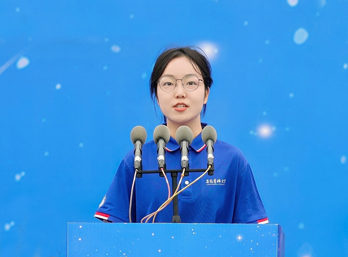 2024级临床医学专业张思齐作为本科新生代表发言,分享了学医的初心,也表达了从医的志向。她号召全体新生在安医大这片土地上,用奋斗实践赋予时间意义,用责任担当点亮青春风景,用仁心仁术救人济世,在医学道路上披荆斩棘,“医”路生花。
