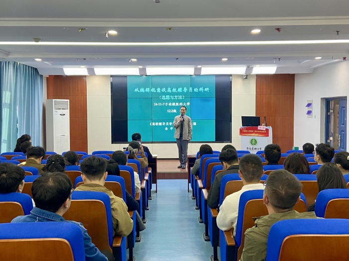 11月7日下午,学校在力行楼1420会议室举办辅导员工作论坛。安徽师范大学马克思主义学院博士生导师、《高校辅导员学刊》常务副主编朱平教授应邀来校,为辅导员队伍作科研素养能力提升培训。