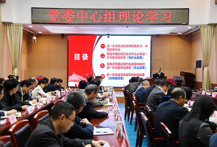 郝永平在报告中深度解读了党的二十届三中全会精神,从进一步全面深化改革的聚焦点是中国式现代化、推进中国式现代化为什么必须进一步全面深化改革、在推进中国式现代化过程中如何进一步全面深化改革、进一步全面深化改革的战略部署等四个方面,全面系统阐述中国式现代化的十五个基本特征,以及为什么要全面深化改革、怎么改、往哪里改等重要问题。