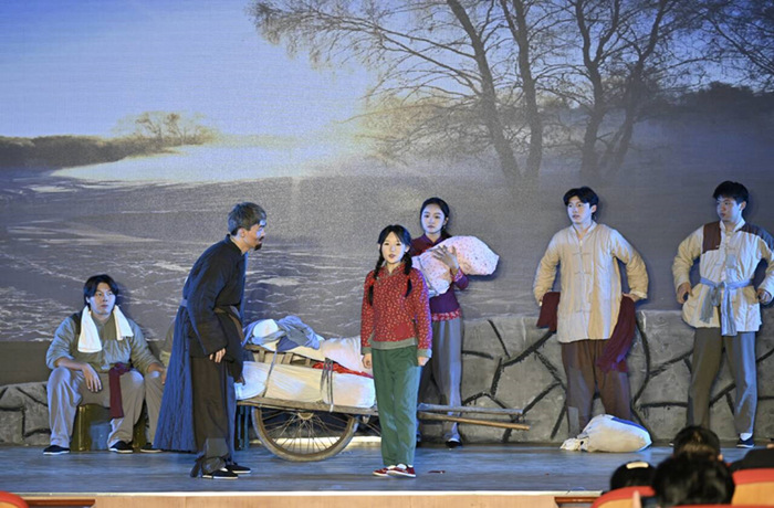 歌剧《向前》以点带面地描绘了淮海战役期间男女老幼齐上阵、家家户户支前忙的生动画卷,还原了其壮观场面。该剧深入挖掘了皖北民歌和地方戏曲等“非遗”元素,在唱腔和合唱编配中融入了淮北花鼓戏、泗州戏、淮北梆子戏等戏曲的艺术特色,以更加新颖、现代的艺术形式展现了中华优秀传统文化。演出生动精彩,赢得现场师生的热烈掌声。