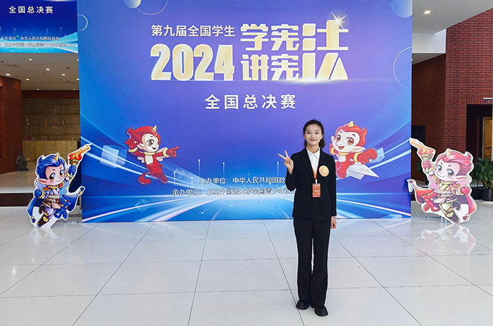 11月27日至12月2日,由教育部主办、北京外国语大学全国青少年法治教育中心承办的第九届全国学生“学宪法 讲宪法”活动全国总决赛在北京举行。法学院法学专业2022级本科生张雅琪代表安徽省参加总决赛法治素养竞赛,并荣获高校组全国二等奖。
