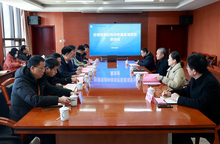 2月8日,新春伊始,校长翁建平赴附属巢湖医院,实地察看诊疗工作,向一线医务人员和在院学生致以新春的问候和美好的祝福,并召开座谈会听取医院建设发展情况。