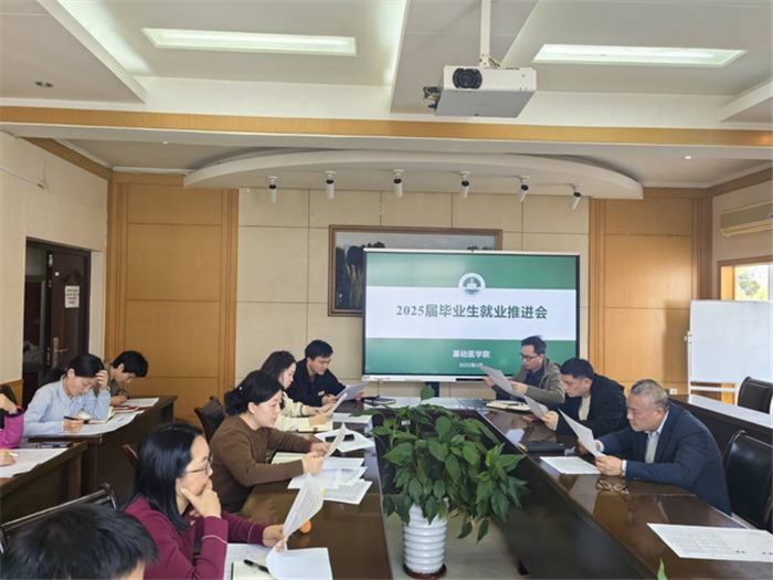 3月24日,基础医学院召开2025届毕业生就业推进会, 就扎实有序开展毕业生就业指导和服务工作作了具体安排。据了解,为深入贯彻落实全国、全省以及学校2025届高校毕业生就业工作会议精神,切实做好2025届毕业生就业服务工作,该院多维度构建就业服务体系,持续提升就业服务质量。