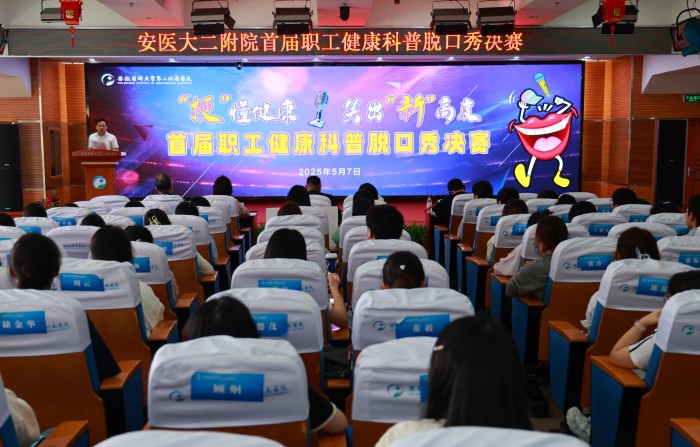 5月7日下午,第二附属医院联合安徽广播电视台,在医院行政楼会议中心举办“梗”懂健康 笑出“新”高度——首届职工健康科普脱口秀比赛。选手来自临床、护理、医技、行政等不同岗位,用幽默语言解构专业术语,用生活场景演绎医学常识,以文化之魂、创新之力、奋斗之志讲好科普故事、安医故事。