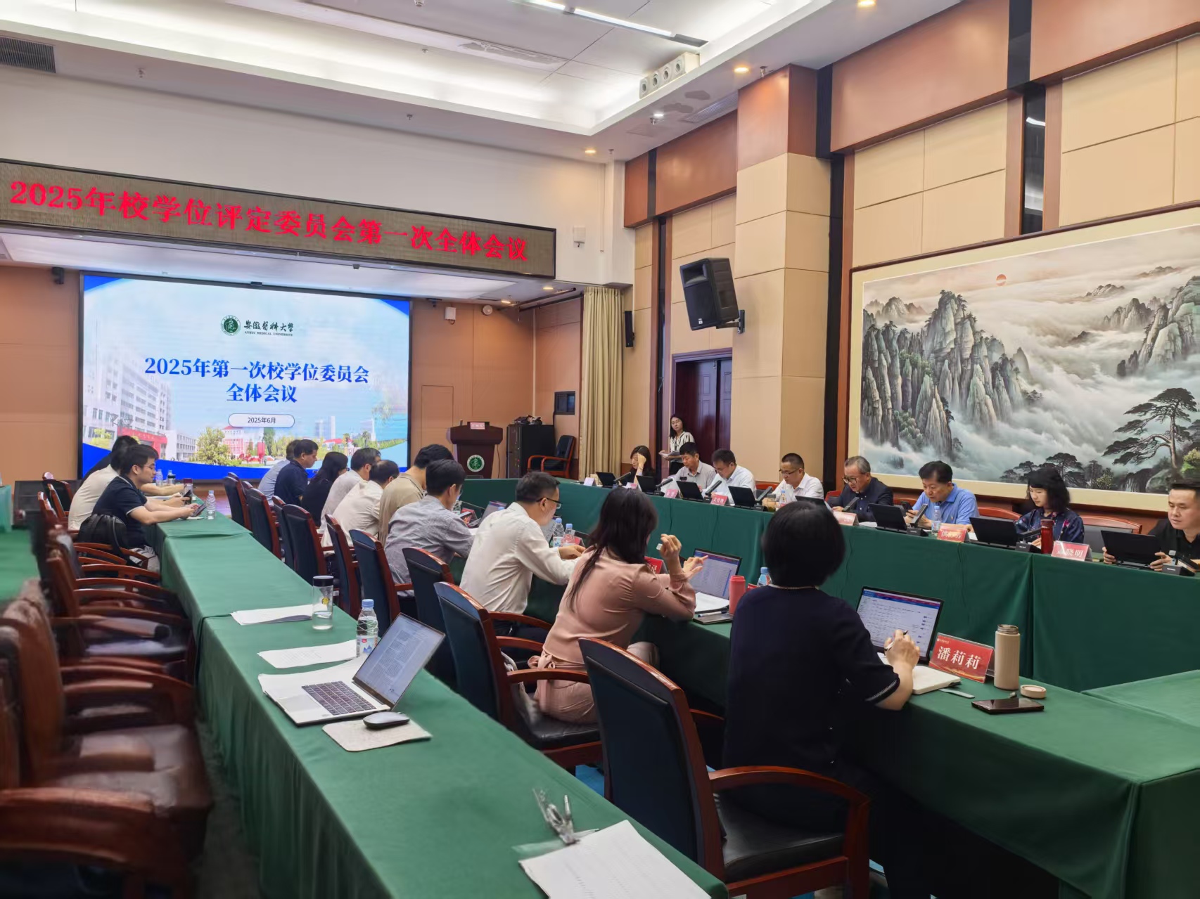 校学位评定委员会就2025年度上半年统招研究生申请博士、硕士学位,同等学力人员及国际学生学位申请情况,导师遴选情况及学位法相关配套文件进行讨论和审议,与会委员就各学位授予、导师增补和遴选投票表决。