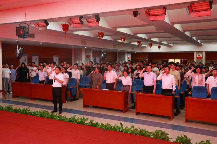 会议由院党委副书记鲍丙刚主持。院党委副书记、副院长邓洪禹领誓,全体毕业生党员与教职工党员一同重温了入党誓词。副院长王文艳宣读安徽省优秀毕业生表彰文件,与会领导为优秀毕业生代表颁发荣誉证书。