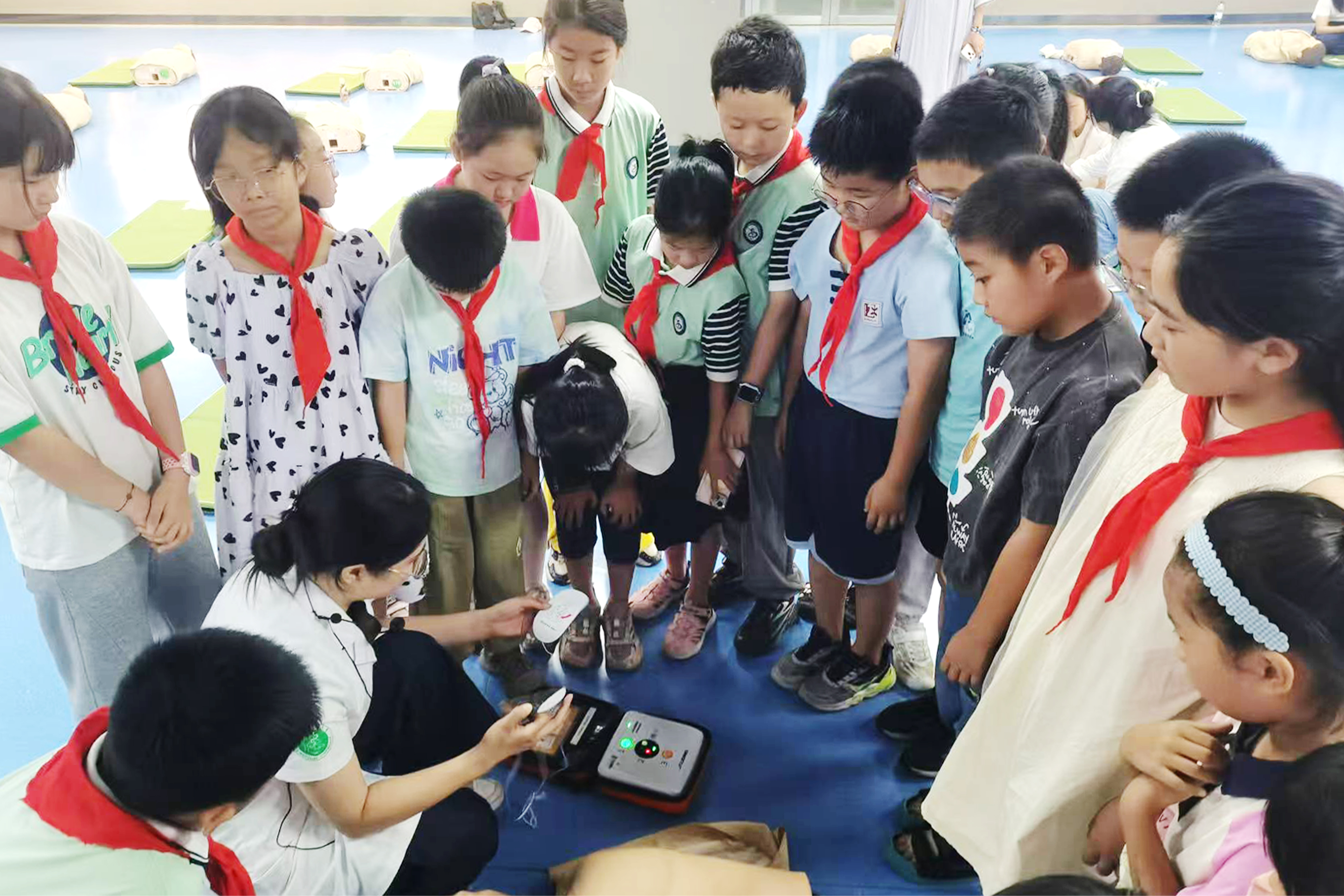 实践环节中,“小小实践家”们参加了心肺复苏(CPR)和自动体外除颤器(AED)操作培训。专业导师细致讲解按压位置、深度和频率等要点,并指导孩子们分组练习。“手臂要伸直,用力均匀!”在反复实操中,同学们逐渐掌握急救技巧。随后,大家还学习了AED的使用场景和操作流程,通过模拟演练成功完成心律识别、电极片粘贴和除颤步骤。活动最后,科普基地为学员们颁发培训证书,赋予他们守护生命的能力与信心。