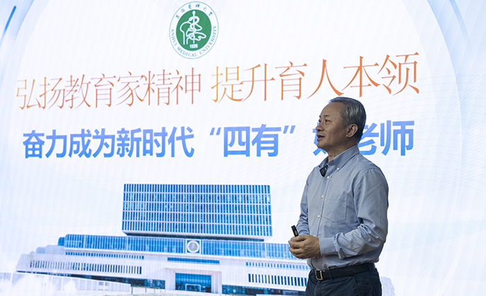 翁建平以《弘扬教育家精神 提升育人本领 奋力成为新时代“四有”好老师》为主题,聚焦“创建‘双一流’大学,青年教师何为”,从传承百年安医的教育弦歌、奋力创建“双一流”大学和以教育家精神铸魂强师三个方面,回顾百年安医的奋斗历程,介绍“五大安医”建设成就,剖析了教育家精神的时代内涵、实践路径,对青年教师提出新的希望和要求。
